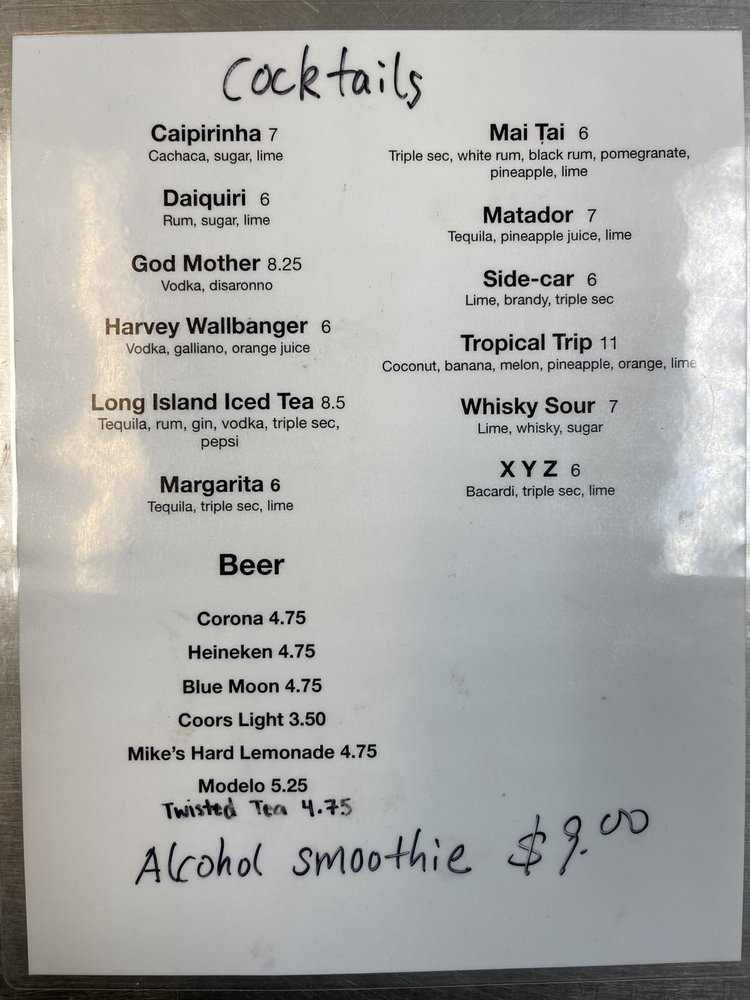 Pepsi, Diet Pepsi, Sierra Mist, Mtn Dew, Dr Pepper, Root Beer or Ice Tea