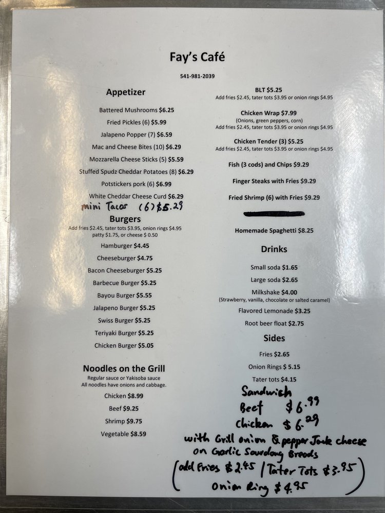 Fay’s Cafe in Albany, Oregon, offers a cozy dining experience with a diverse menu catering to all tastes. The café, owned by women, boasts a welcoming atmosphere with friendly staff and quick service. Customers rave about the fresh and flavorful burgers, such as the teriyaki burger and bacon cheeseburger, as well as the delectable fried pickles and onion rings. The extensive menu includes options for vegetarians and a selection of boba drinks, cocktails, and milkshakes. The retro interior design with vintage photos creates a nostalgic 50's drive-in vibe, perfect for a casual dining experience. Fay’s Cafe is a hidden gem for those seeking quality food made to order, and a must-try in Albany for burger lovers and food enthusiasts alike.